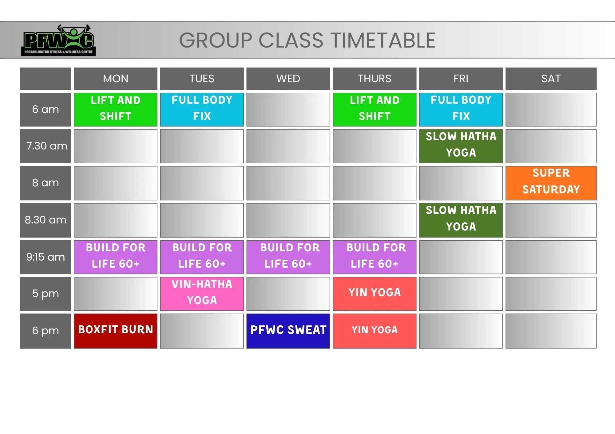 Classes are 45minutes and included in all PFWC memberships. Members can download and book classes via the GymMaster app. For casuals, please call or message us to book and pay $25 for your class. Current members will be prioritised for all class bookings.